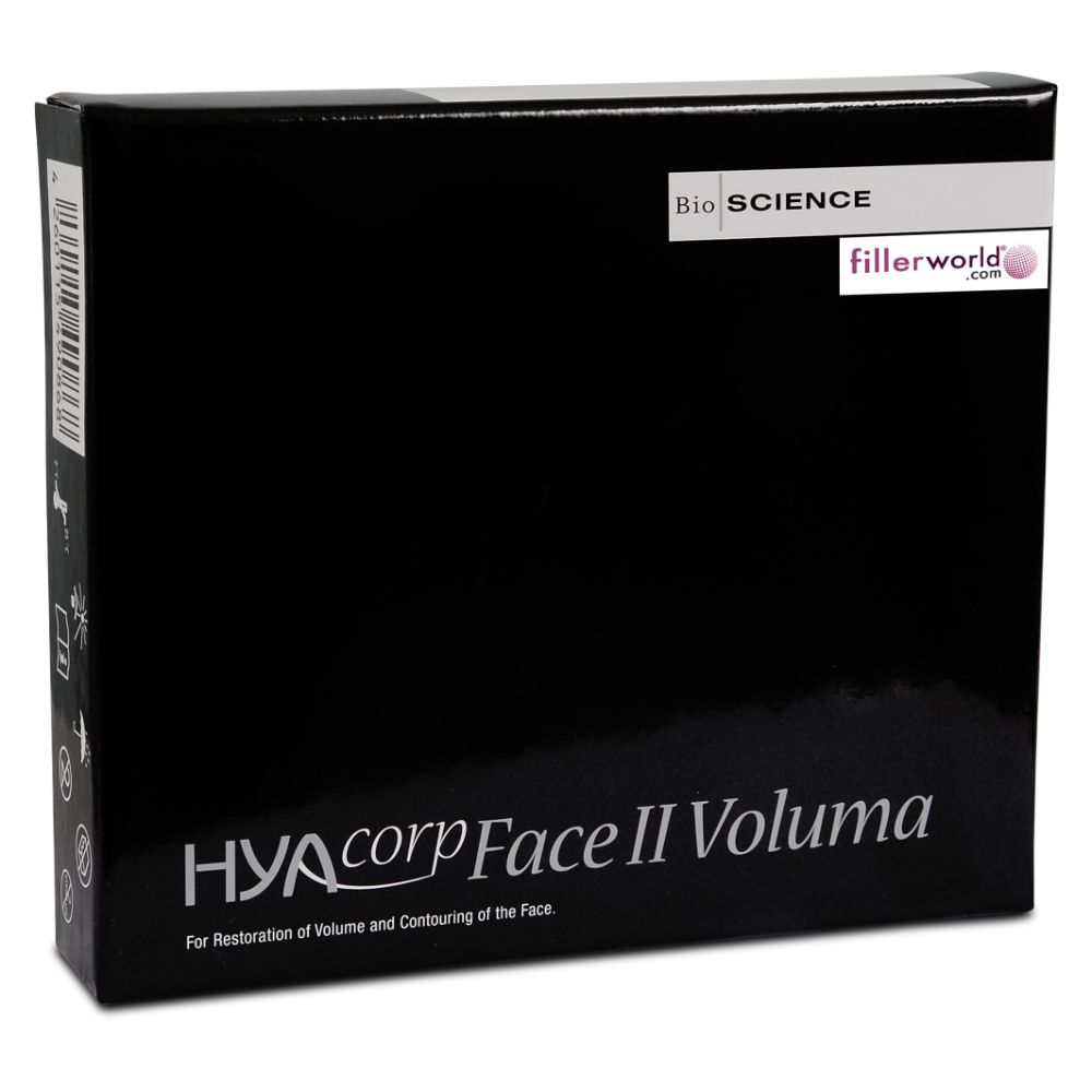Hyacorp Face II Voluma contains a clear viscous gel of cross-linked Hyaluronic acid to help correct the volume of the face. There is a higher degree of crosslinking within this product as it is required to treat deeper folds.